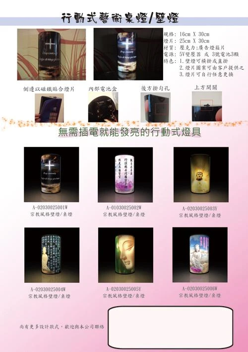 此LED壁燈兩側由對貼式磁鐵吸附燈片,更換容易,並有多款式設計,以種類區分為宗教、音樂、創意插畫等多種樣式,美觀大方,不論是掛在牆上或是置於桌面皆適宜。此LED壁燈兩側由對貼式磁鐵吸附燈片,更換容易,並有多款式設計,以種類區分為宗教、音樂、創意插畫等多種樣式,美觀大方,不論是掛在牆上或是置於桌面皆適宜。永捷科技徵求可換燈片LED壁燈經銷商,此LED壁燈兩側由對貼式磁鐵吸附燈片,更換容易,並有多款式設計,以種類區分為宗教、音樂、創意插畫等多種樣式,美觀大方,不論是掛在牆上或是置於桌面皆適宜,歡迎與我們聯絡。