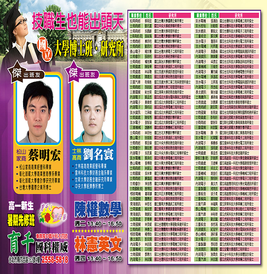 101年育千商業類學子再傳佳績【年育千單一補習班錄取國立科大