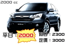 HONDA CRV 2000c.c. 可乘5人 配備全球衛星定位導航系統、DVD、VCD、MP3影音光碟系統。租車保証使用三年內原廠新車電話預約享網路優惠價$2000元,再打九折 --連續假日與寒
