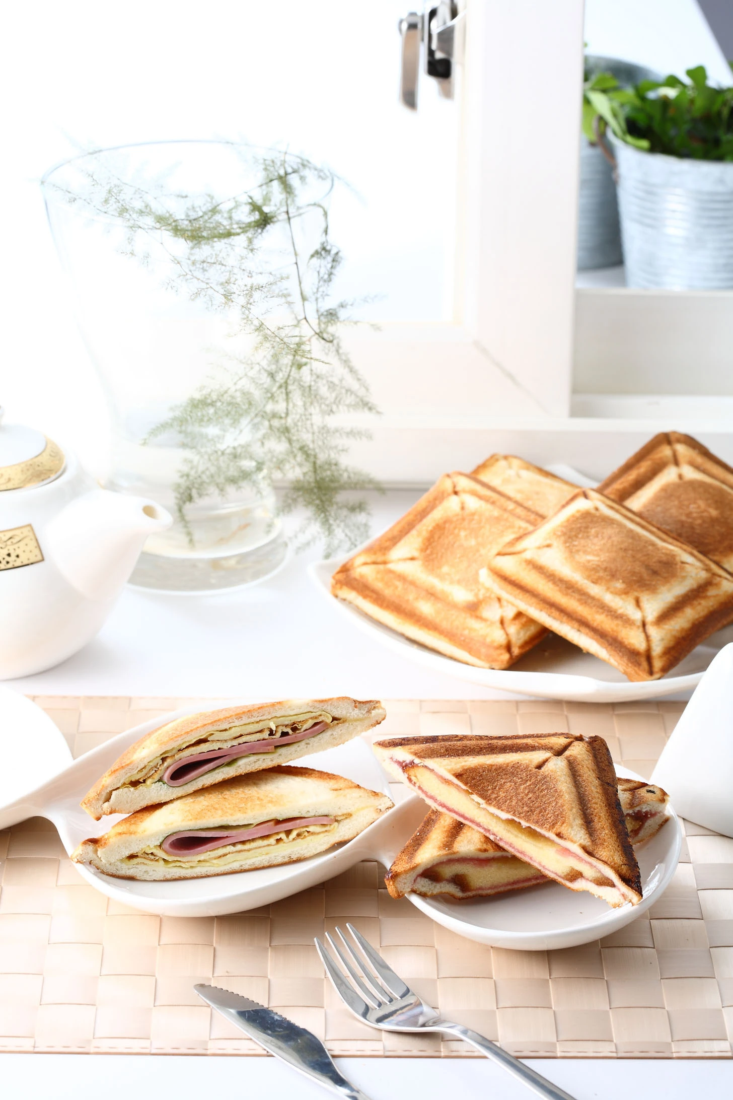 吐司包夾滿滿配料煎烤成吐司堡,可愛的造型,香酥的口感,超滿足的口味,專賣店、攤車或規劃於原有早餐店、咖啡館(吧)、複合式餐飲,消費者最佳輕食選擇! → 可內包配料:燻雞、火腿、鮪魚、起司、生菜…等鹹品味