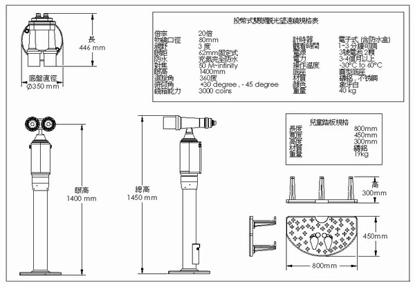 30倍、投幣式觀景望遠鏡(台灣製造)