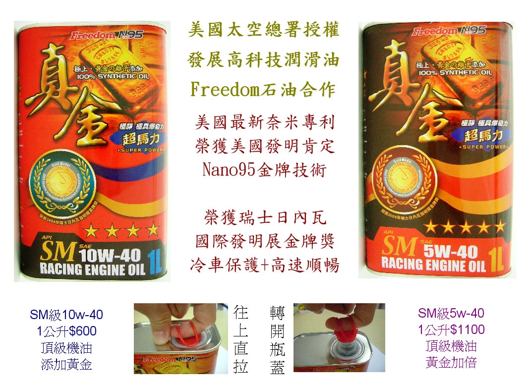 1.性能等級 100%全合成機油SM級,添加奈米黃金滲配合成,