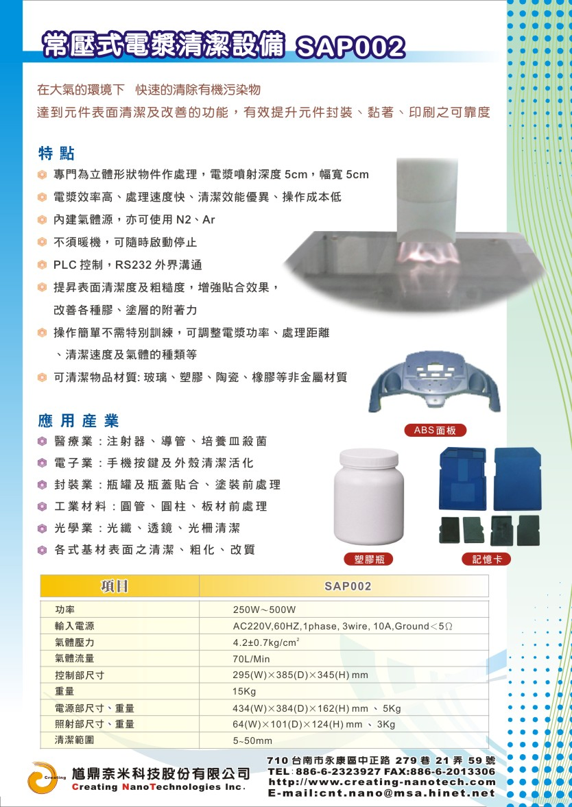 常壓-電漿設備,分析儀器,電漿電源供應器,鍍膜代工,刀具