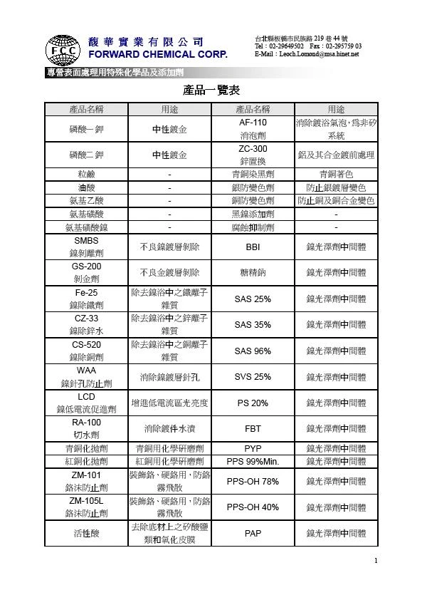 #光澤劑#柔軟劑#添加劑#金屬表面處理#電鍍