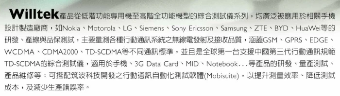 Willtek 2G/3G/3.5g 行動通訊綜合測試儀