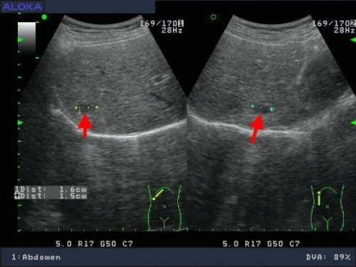 正常肝臟![]() Rt liv :右葉肝臟 IVC :下腔靜脈 hepatic V :肝靜脈 ![]() Lt liv :左葉肝臟 , LHV :左側肝靜脈 , LPV :左側肝門靜脈 , IVC :下腔靜脈 , SMA :上腸繫膜動脈 , SV :脾靜脈 , P :胰臟 , AORTA:主動脈 肝癌 ![]() 肝硬化合併早期肝癌1.4公分 ![]() 轉移性肝癌 ![]() 肝癌局部復發 1.6 公分 ![]()