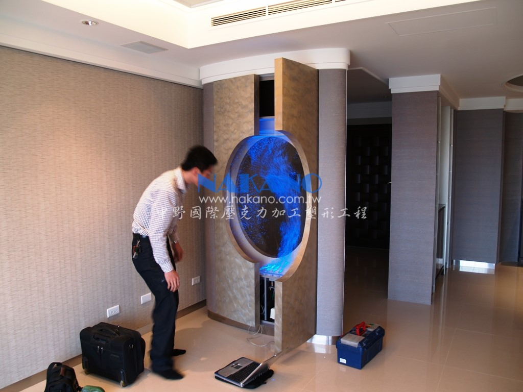 可搭配商業空間、住家或觀光景點等設計不同尺寸水舞牆,融合空間與藝術創造環境的生命力,中野水舞氣泡牆擺脫呆板靜態展現方式,可隨燈光變化及引導氣泡行進路徑展現氣泡在水中運動的活力,尤其氣泡在水中旋轉時產生鑽石般亮眼顆粒,特別引人注目。