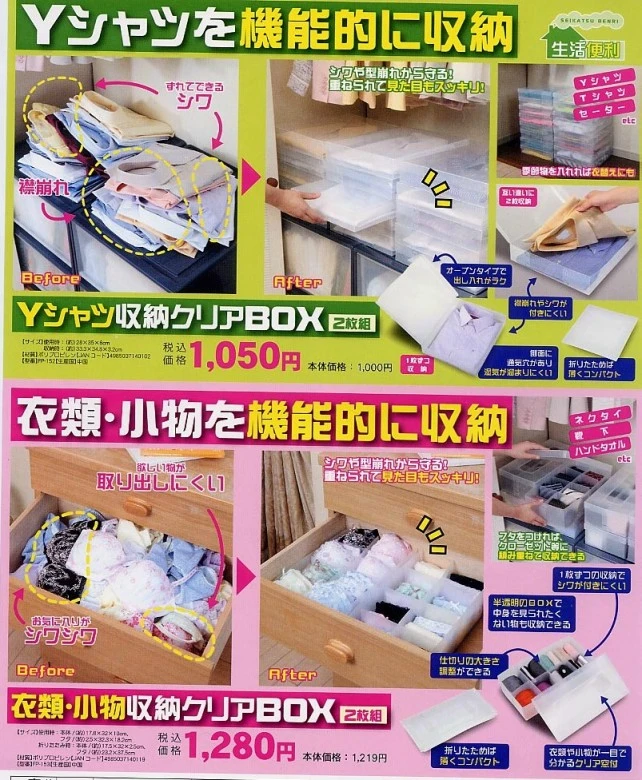 1.Yシャツ収納クリアBOX2枚組 (上代¥1,000 税抜き)