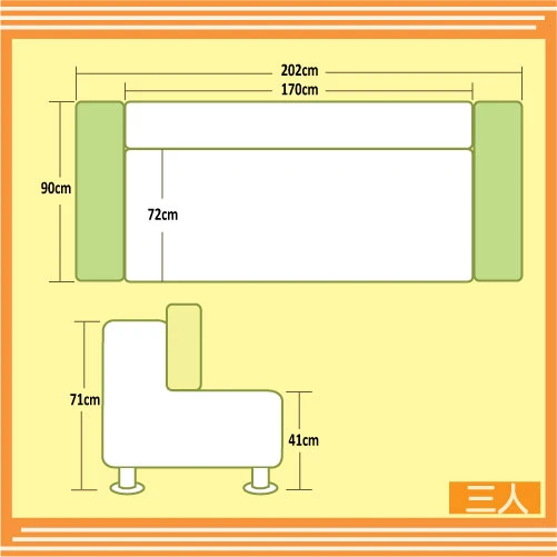 3人座-長202X寬90X高71公分,坐深72 / 坐高
