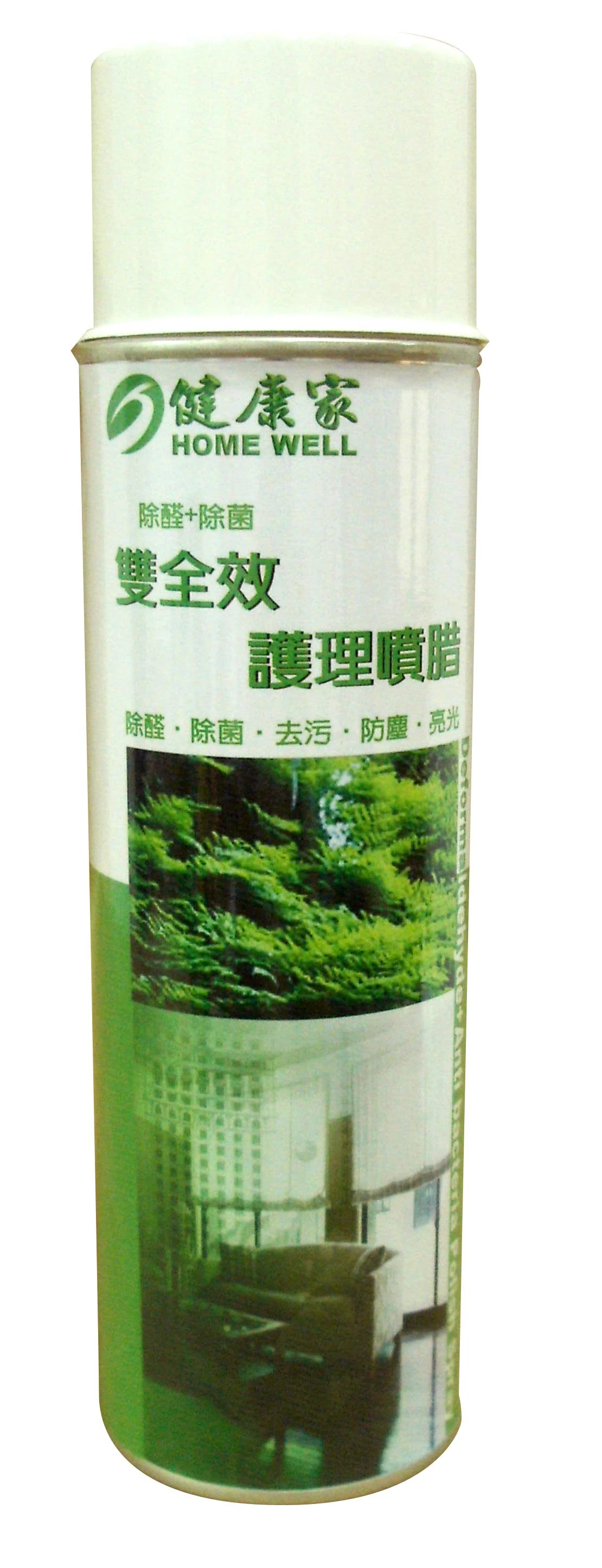 為純水性乳蠟配方經由噴灑擦拭後,可在物體表面形成一透明的蠟膜防護層,有效修補物體表面細微裂痕並發揮快速、長效的除醛、防霉、抗菌、除臭功能。