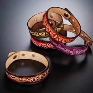 個性化的皮製手環搭配各式樣的衣服皆很合宜,手環內部也可利用電燒筆烙字,送禮自用皆很適合。