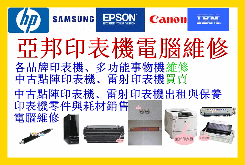 本公司現有各種中古/二手 點陣 雷射 印表機出售,種類多,價格公道。亞邦印表機維修、印表機出租、印表機出售、碳粉匣出售、印表機保養