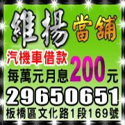 大板橋地區維揚當舖汽機車每萬元月息200元不限任何區域維揚當