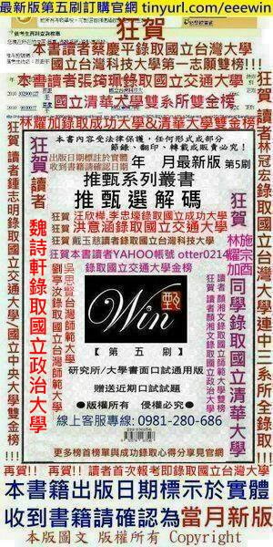 【因版免面限制,更多榜單與閱後錄取感言請前往官網瀏覽】 |