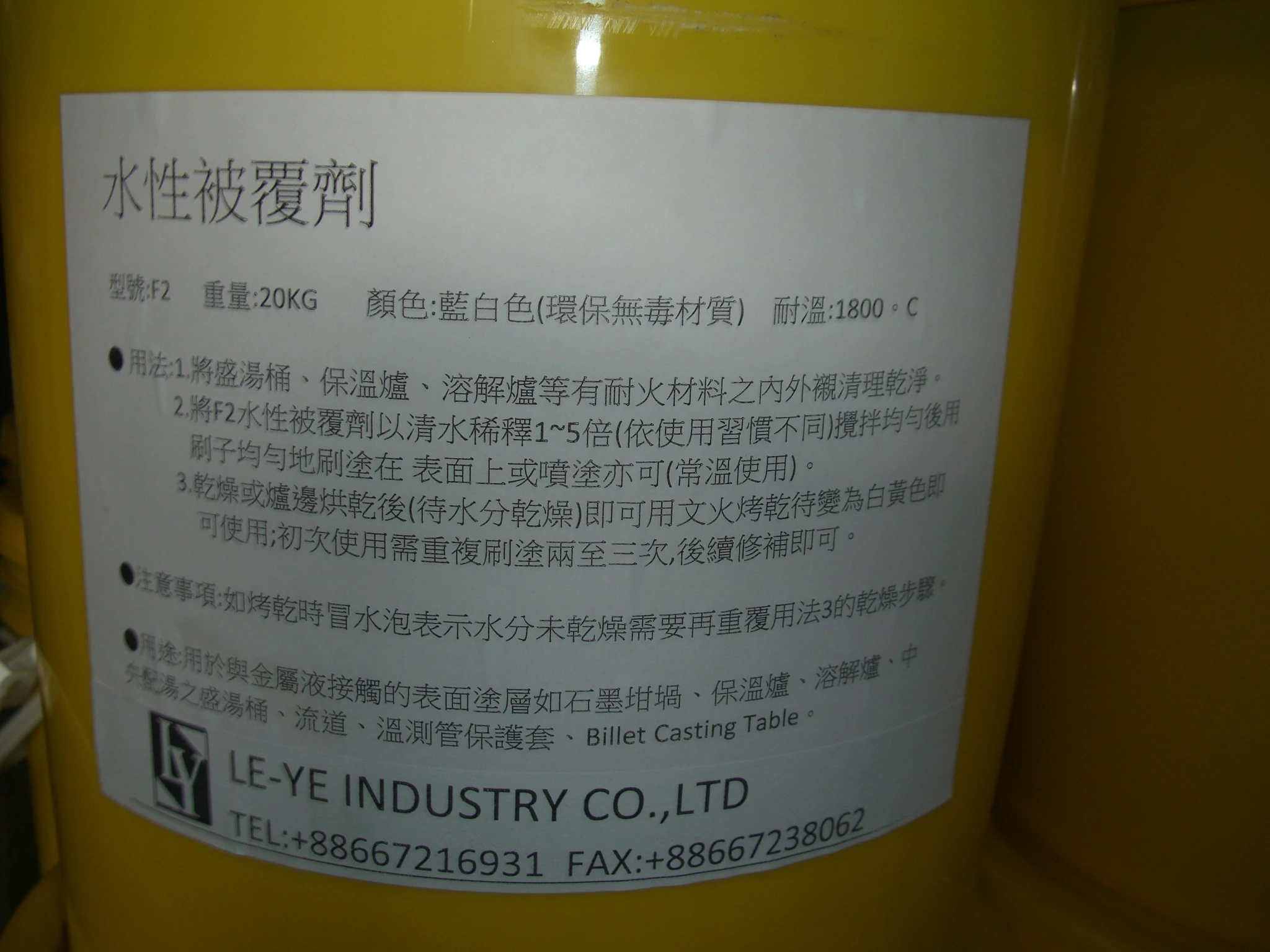用途:用於與金屬液接觸的表面塗層如石墨坩堝、保溫爐、溶解爐、中央配湯之盛湯桶、流道、溫測管保護套、Billet Casting Table。