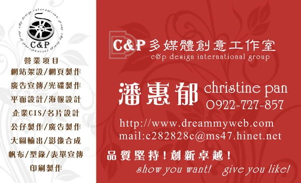 E世代網路行銷為自己作個官網宣傳自己(個人官網,公司官網) C&P多媒體創工作室圓夢計畫網站風格是依業主要求設計定稿, 參考網址: