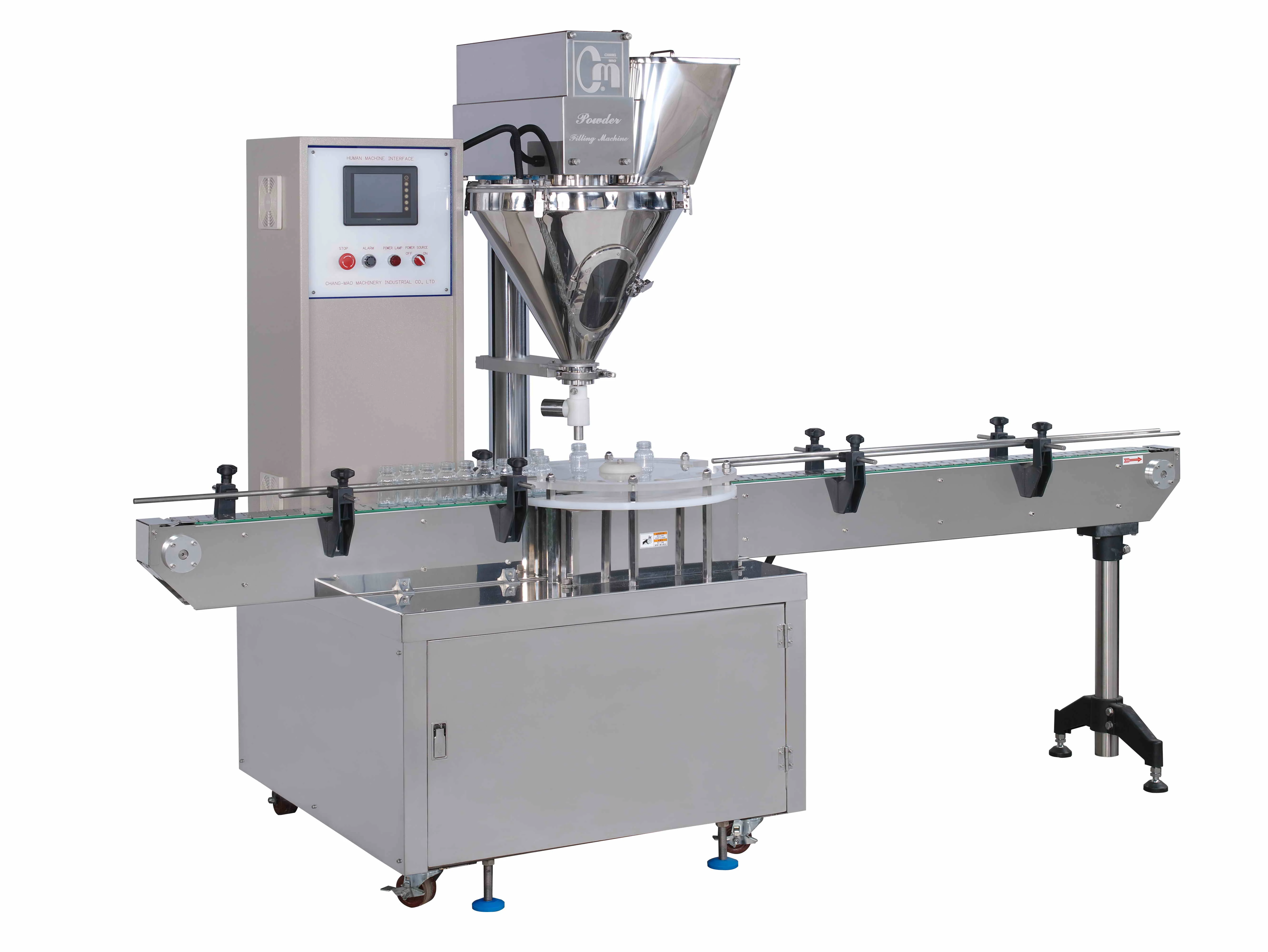 半自動粉末/微粒充填機, 可搭配瓶裝或袋裝產品, 螺桿傳動系