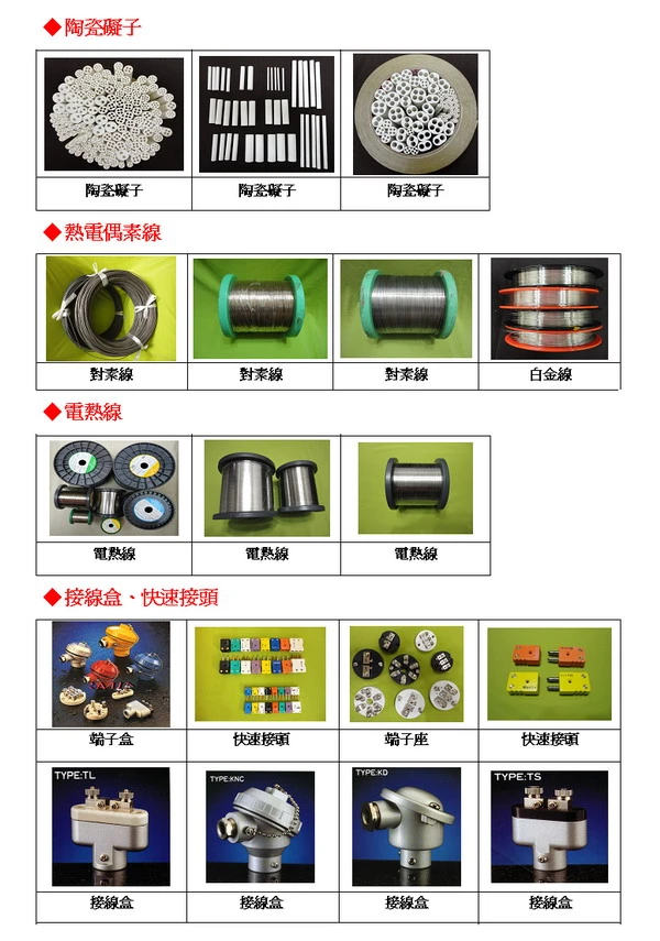 提供高品質各類型熱電偶、保護管、電熱線、補償導線、對素線..