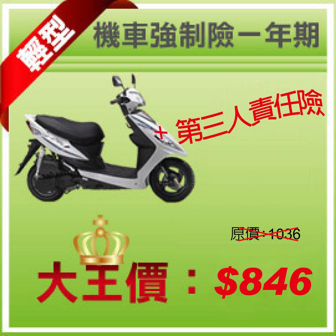 1320一生愛您全國最便宜機車強制險一年期(輕型)50c.c.(含)以下 http://store.pchome.com.tw/asiatech/M06522511.htm |