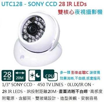 UTC128 1/3吋 SONY CCD 彩色雙核心半球型紅外線攝影機/ 監視器材/28 IR LED投射距離25米 (含電源)