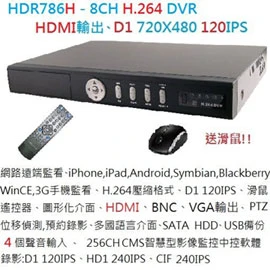 HDR786H - 8路H.264 DVR數位錄影機/監視器材(HDMI,網路,4聲音,滑鼠,USB,遙控/iPhone,3G手機監看/ICATCH