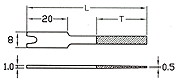 鑽石銼刀片 特 性: 1. 富彈性,可彎曲研磨。 2. 厚度只有1mm,適合狹絳研磨。 3. 適合用於各種銼磨機及手持加工。