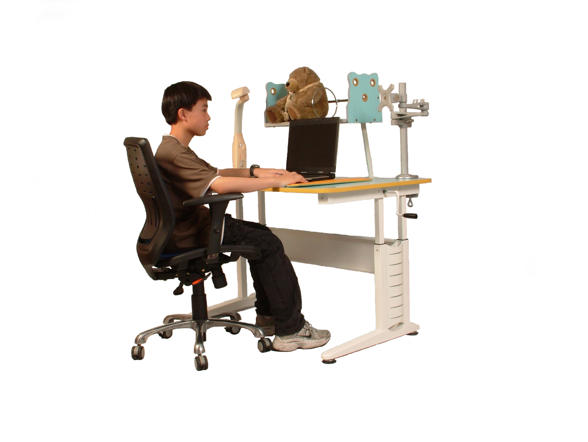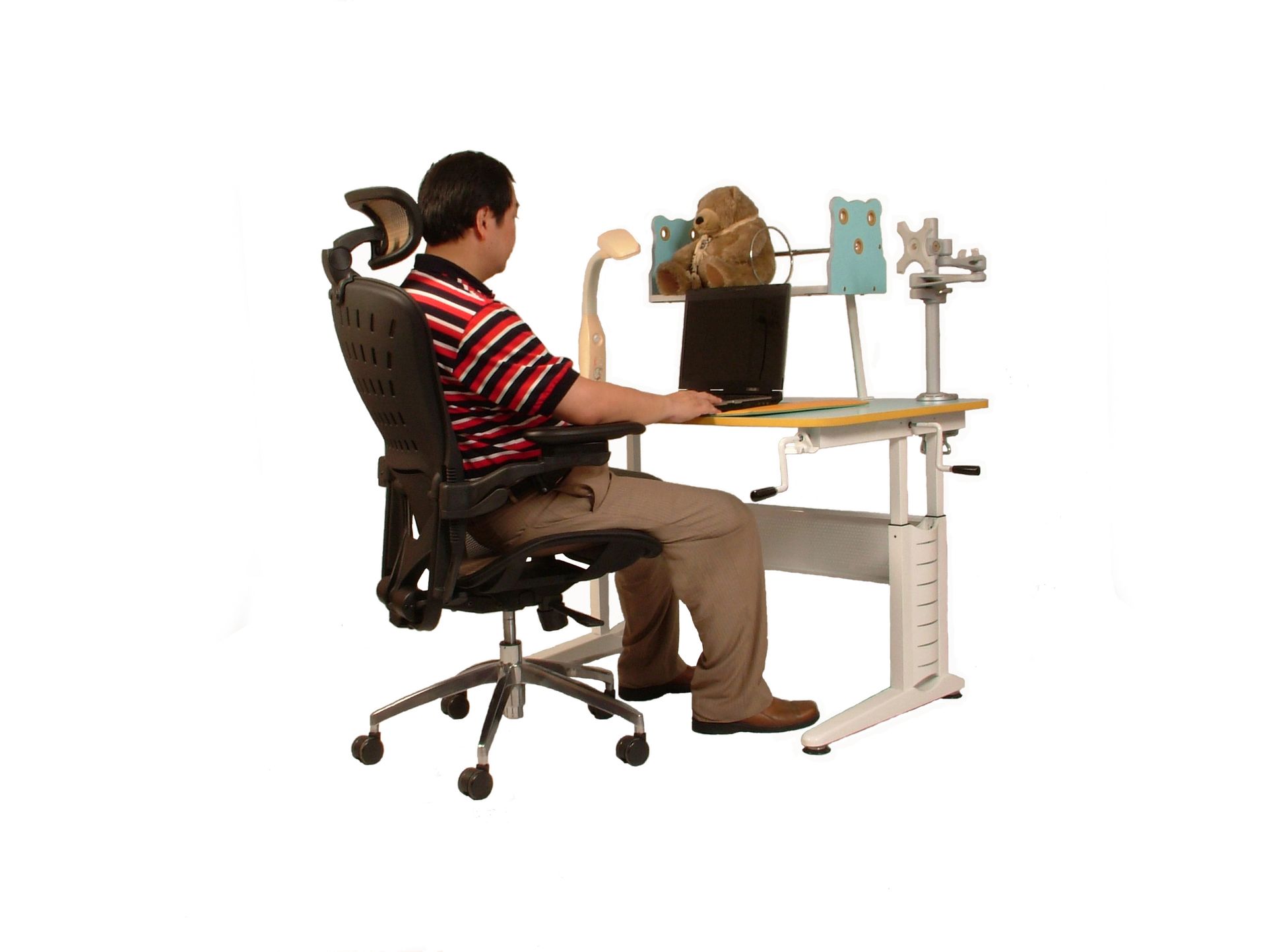 1.由文碩快樂桌椅王國,在台專業設計製做(專利申請).以最新科技4D(左右前後)皆可手搖調高度