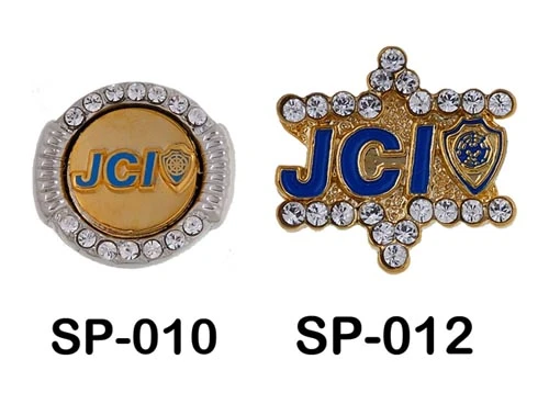 紀念章SP-010 ∕ SP-012材質是進口高級合金鑄造,產品背面是刺馬針+蝴蝶帽(釦)或改用高級後束,青商會證章SP-012是翔聆專為青商會設計打版製作,因此LOGO若要替換可由您自行設計造型重新打版訂製,徽章SP-010的LOGO材質是進口高級銅壓製,軟琺瑯高級作法圖案可定做更換,兩種紀念章皆用飾品高級電鍍金或白K確保徽章的高品質,加上施華洛世奇系列飾品專用奧地利製16切割面奧登水鑽後,紀念章SP-010 ∕ SP-012就是您不用再費神挑選最佳的贈品及促銷品