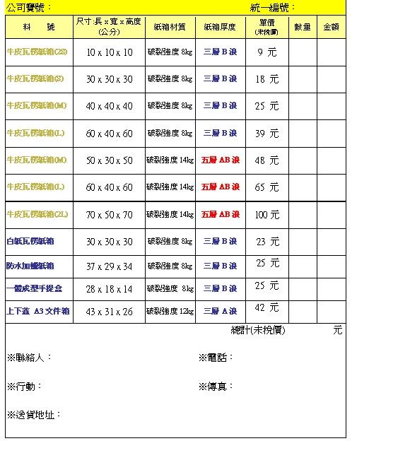 便箱價目表-另有其它便箱尺寸,歡迎來電洽