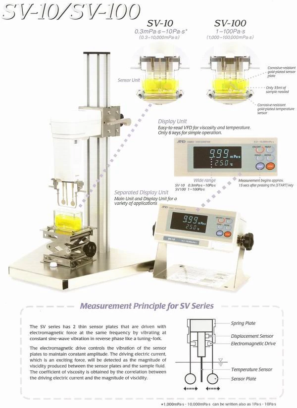 ‧新研發的SV方法(音叉振動式)可達到高達1% 黏度測量的精確再現性。
