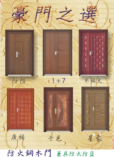 您無法預測門外下一刻會發生什麼事。安全堅固的門是守護您身家財產的第一道關卡,您能不重視嗎? 居家防護新思維,以往對安全性的要求是抵抗有形的外力破壞,但對無形的火卻毫無招架之力。新世紀的防護思維是能抵抗有形阻却無形的入侵,才能達到完全的保護。 本公司產品全系列通過國家認證達到防火時效1小時及阻熱1小時效能,搭配防盜防火五金門鎖,讓您的家園擁有最高等級的安全防護。 本公司防火門系列經國家認證,同型式認證最多樣,材質、飾材彈性選擇,歡迎洽詢林口區忠孝路542巷10弄1號 防火門、鋼木門、各款式地板、系統家具、裝修建材批發零售