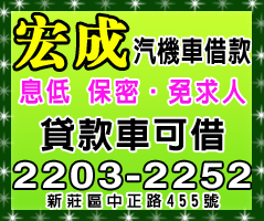 台北縣新莊市宏成當舖:汽機車借款~來就借