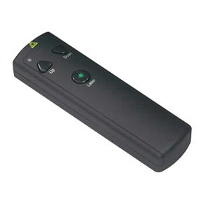 本簡報筆所採用雷射為較少見之綠光雷射,亮度比紅光更亮,射程更遠,在白天或亮處亦可清楚的指示。