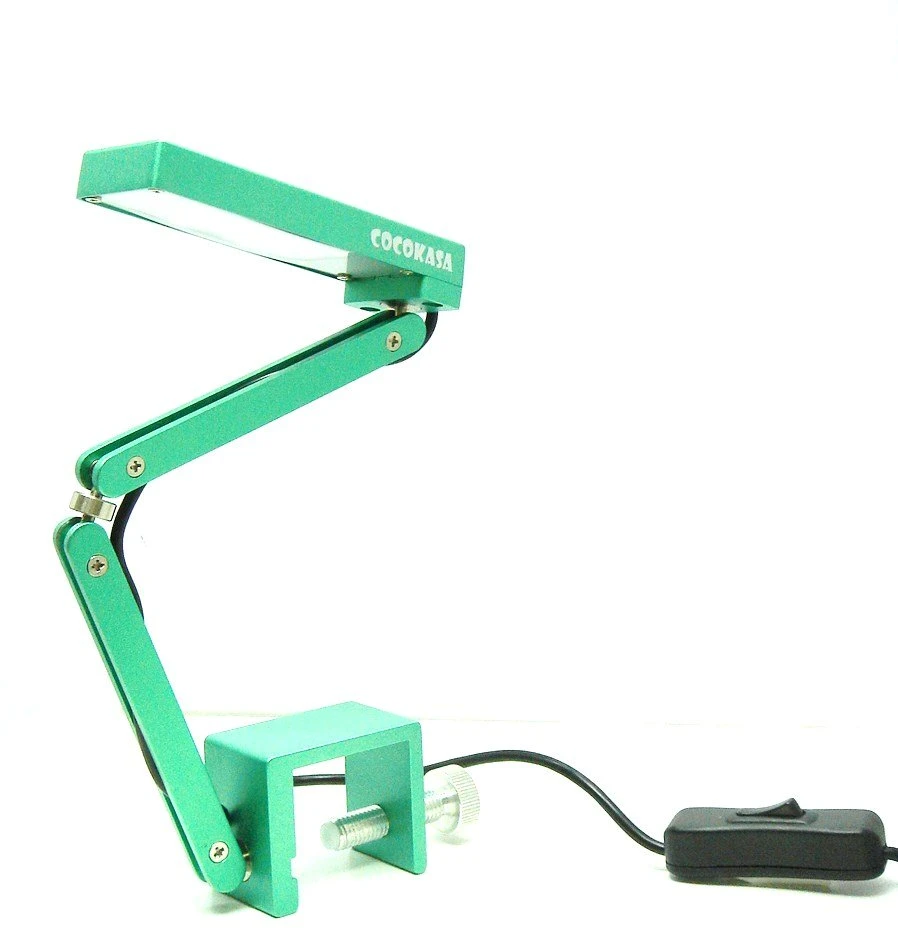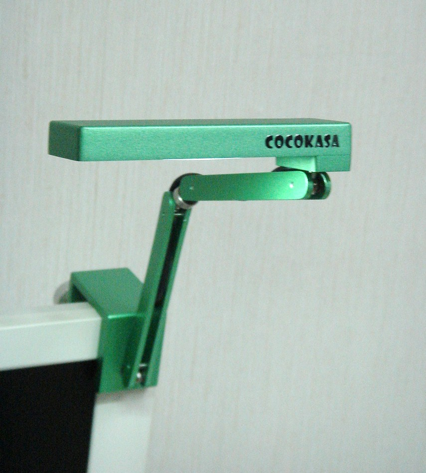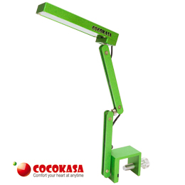小折夾燈上有兩節燈臂,在燈臂的二端置裝專利關結,因此燈可以輕鬆360度改變角度,而且可以對折收納像摺疊腳踏車一樣.夾燈座可以固定在再任合厚度4cm以內的板型物件上.桌面,櫃子,LED螢幕膸處夾膸處亮.