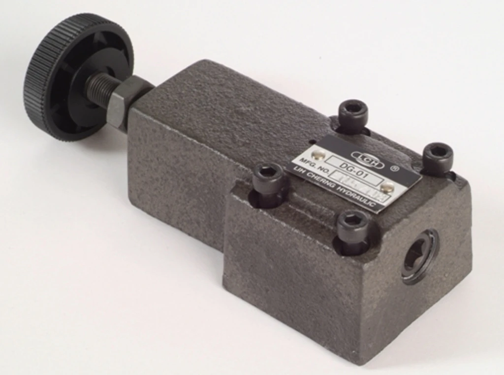 *This kind of valves is worked for preventing damage in a hydraulic circuit if over pressure. It is use for adjust the maximum circuit pressure of small capacity. *DT-01 and DG-01 series valves could connect with balanced piston type of vent. It works by using small flows pressure to control remotely large flows pressure which can be matched the requirements of versatile hydraulic system.