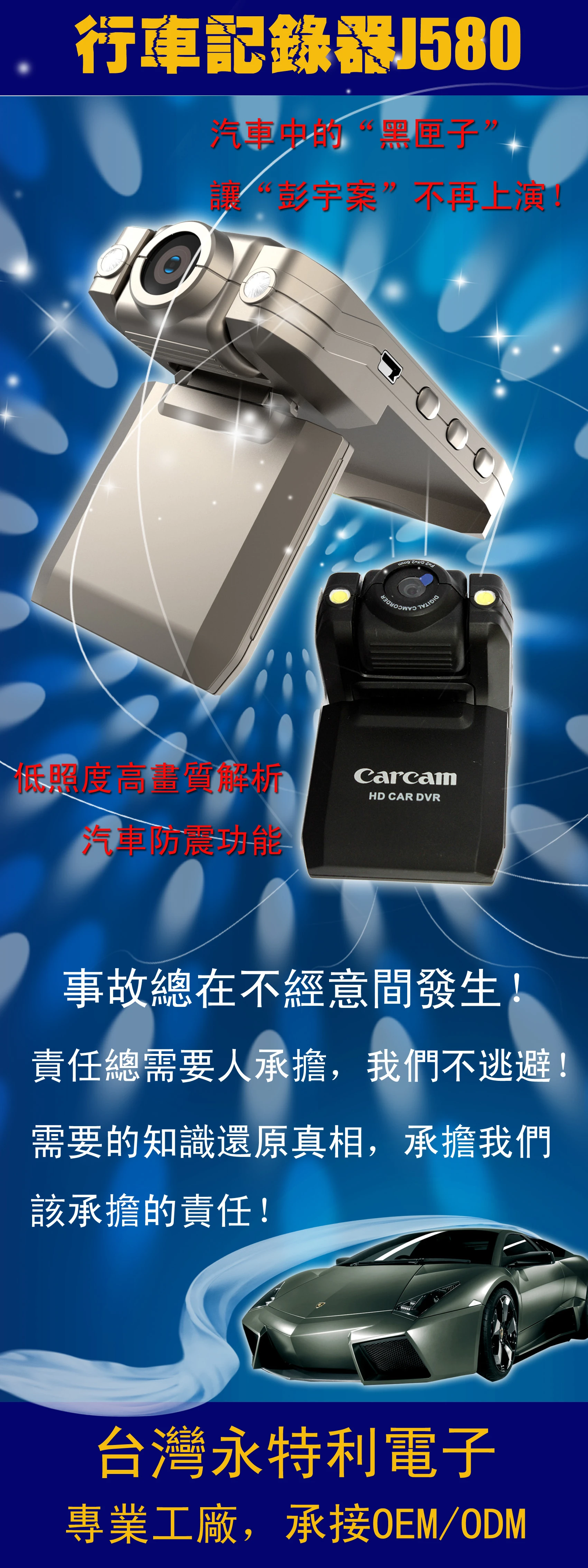 台灣永特利電子,是一家專注於汽車影音電子領域技術研發的高科技企業。擁有專業研發團隊,配備國內外高科技試驗、生產、檢測設備。主要生產行車記錄器、行車影音記錄器、汽車黑匣子、空氣清淨機等汽車電子。公司除自主研發產品外,同時OEM/ODM產品給位於俄羅斯、美國、日本、韓國等公司,贏得了廣泛的市場贊譽。