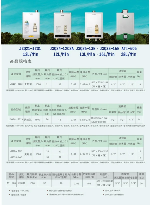 遵循北美“能源之星”設計標準貼近真實能耗真正節能環保北美CSA認證 品質更放心低NOx排放技術 低碳環保低壓燃燒系統 持久熱力更穩定平衡式進氣排煙系統 燃燒高效又安全自動增壓設計高抗風壓技術 惡劣天氣也可以正常使用可接循環系統更精準鎖住舒適溫度暢浴無憂低噪音設計 給您寧靜舒適的洗浴享受智慧省氣技術 有效省氣