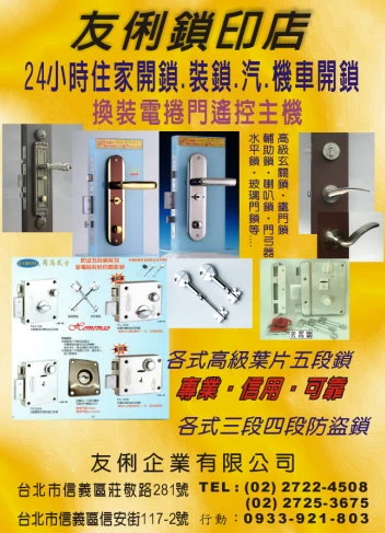 友俐24小時專業開鎖裝鎖