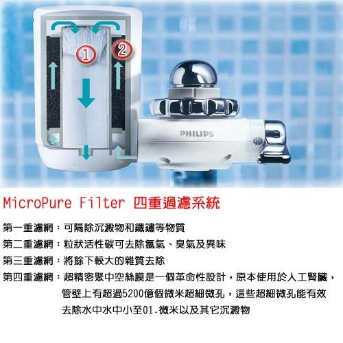 更多飛利浦優質產品,都在飛利浦優質生活館!www.leico.tw四重過濾系統˙四重過濾系統˙可保留水中礦物質˙附8款水龍頭安裝配件˙三段水流切換桿˙卡式濾心,自行更換簡易