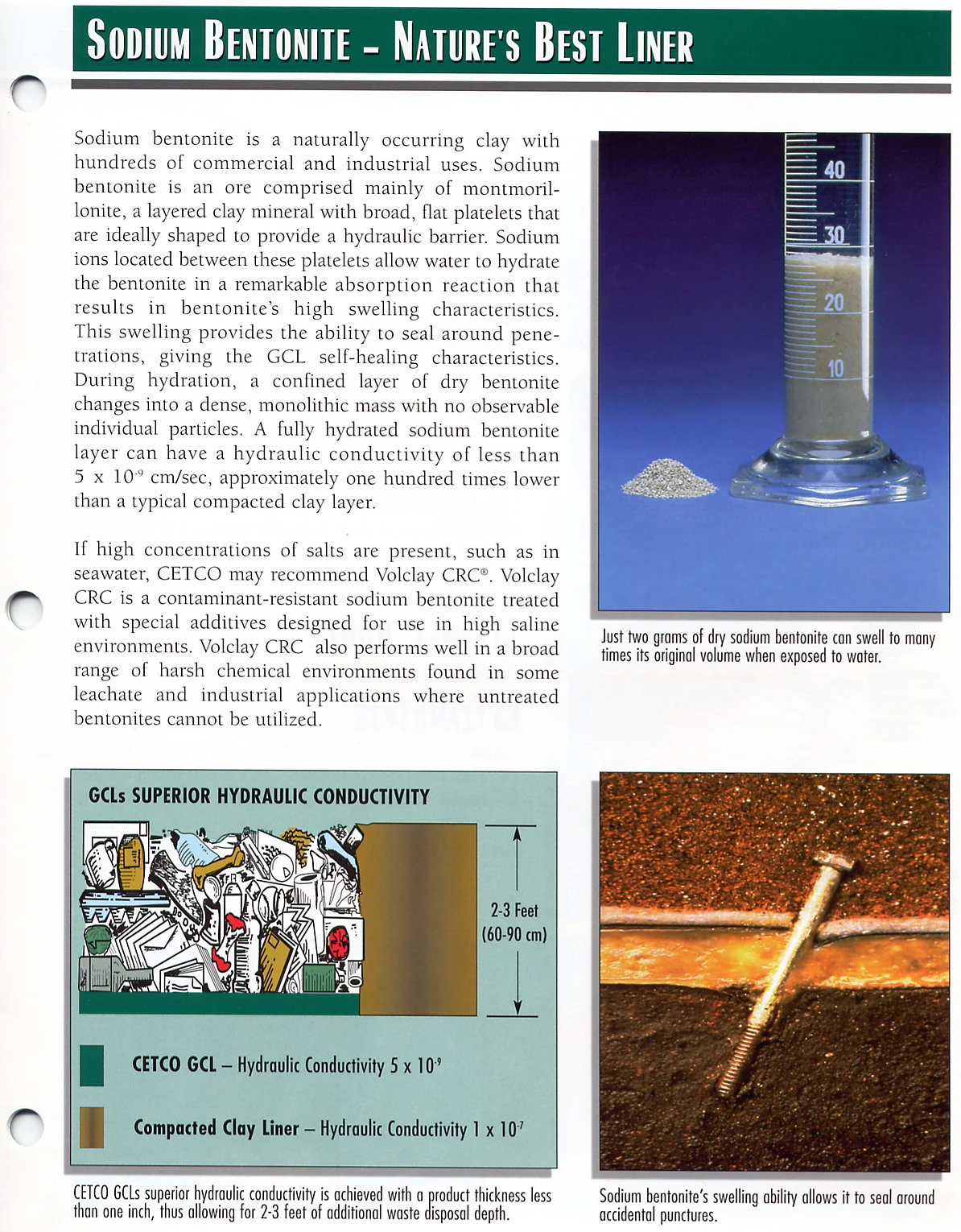 (6) Cetco®皂土防水毯天然鹼性鈉皂土永不老化,不造成二次污染。