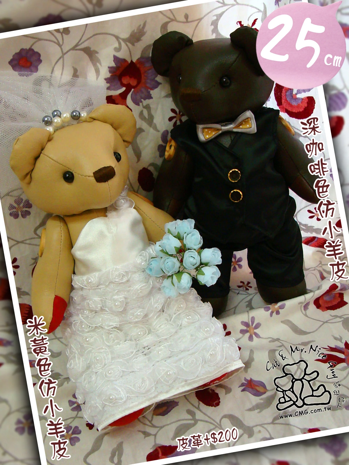 25cm 手工婚禮對熊"自訂"禮服