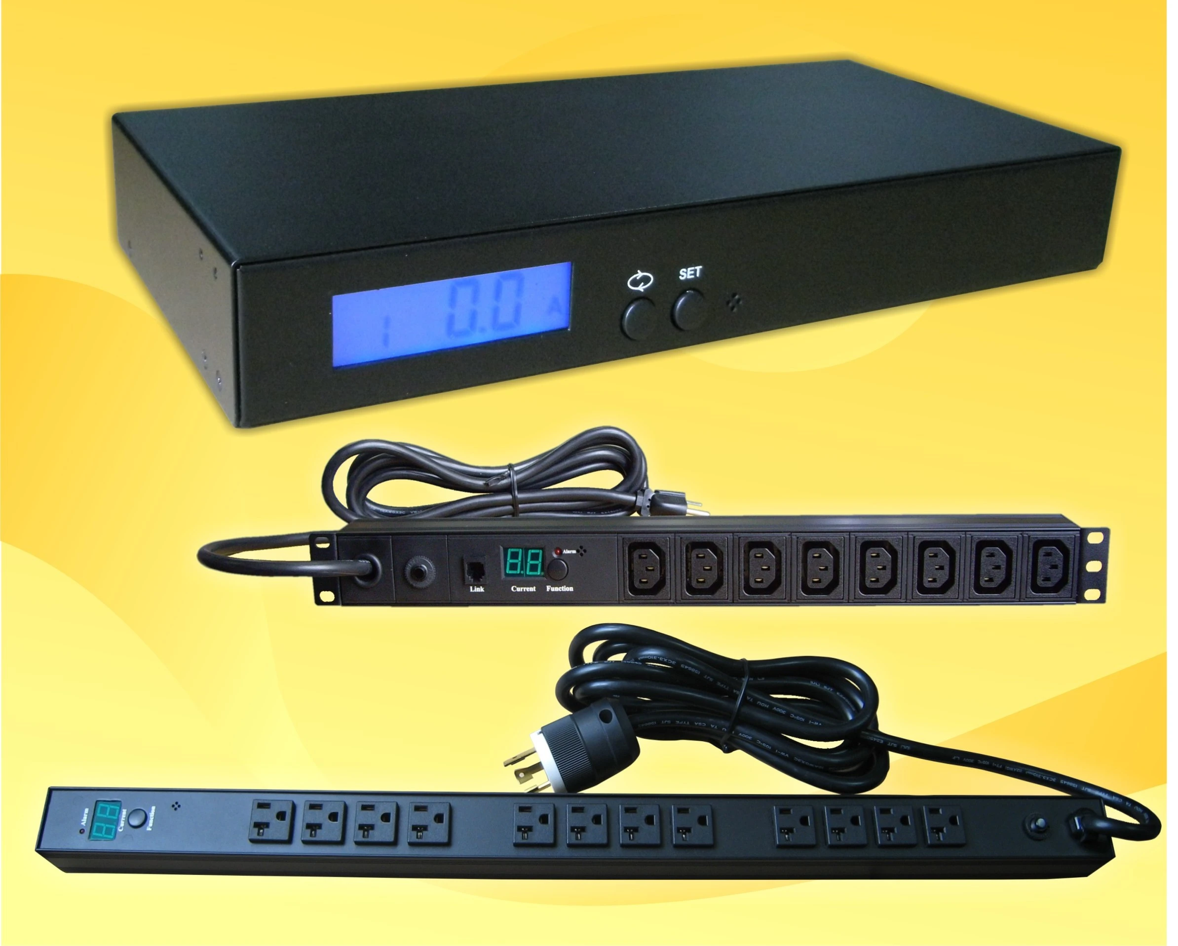 採橫式1U機架式8PORT設計,及垂直式機架式12PORT設計,可上架於機櫃上監控主機設備電流!高亮度數位顯示LED電流表,即時監控設備耗電流.