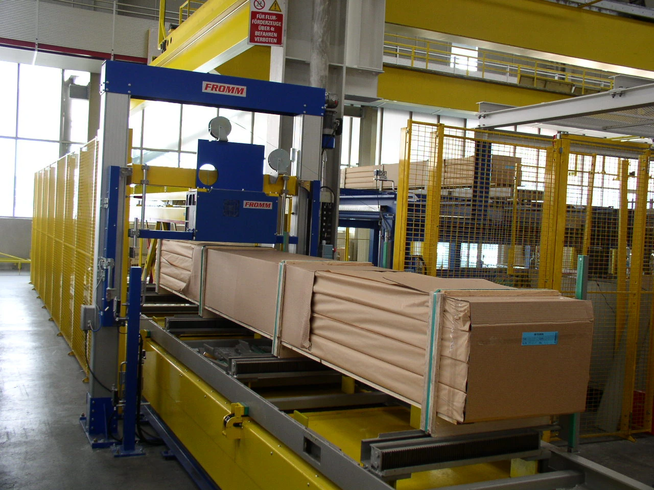 是铝业和钢铁行业用于固定重型集装货物的理想自动化包装系统。