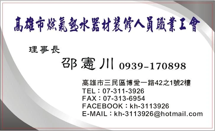 高雄市燃氣熱水器材裝修人員職業工會提供從事本業勞工證照諮詢/複訓資訊/勞健保/職災協助辦理