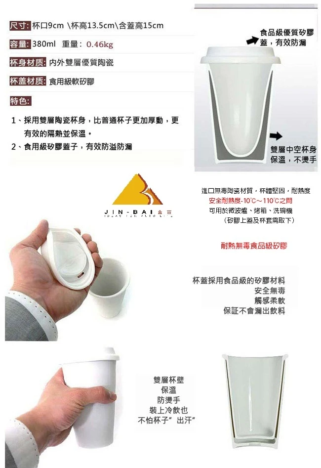 ◆採高品質雙層白瓷製作◆符合人體工學的杯身,握感更舒適◆裝上