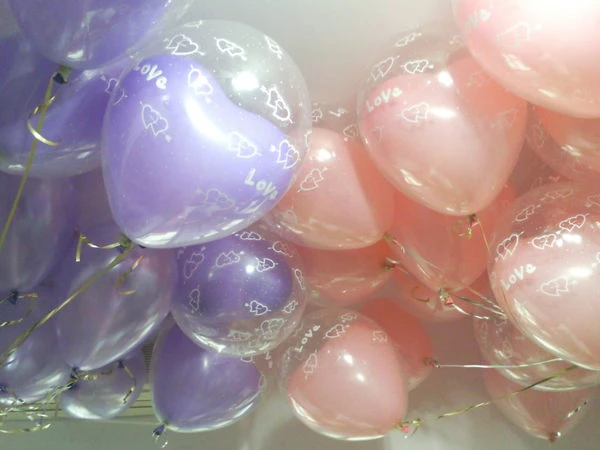 雙層氣球,外層透明有花紋,內有愛心或圓型樣式