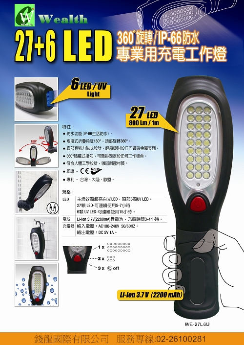 27 LED+6 UV 折疊式LED工作燈