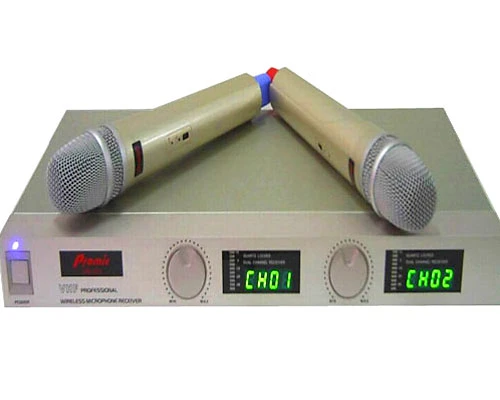 原產地:台灣產品特徵:1.LED數字顯示雙頻道/高傳真/低雜音/原音重現。2.VHF(170~250MHz)多種頻率可供選擇。3.音碼鎖定/自動雜訊消除/音頻動態範圍大。4.可搭配兩支無線麥克風同時/