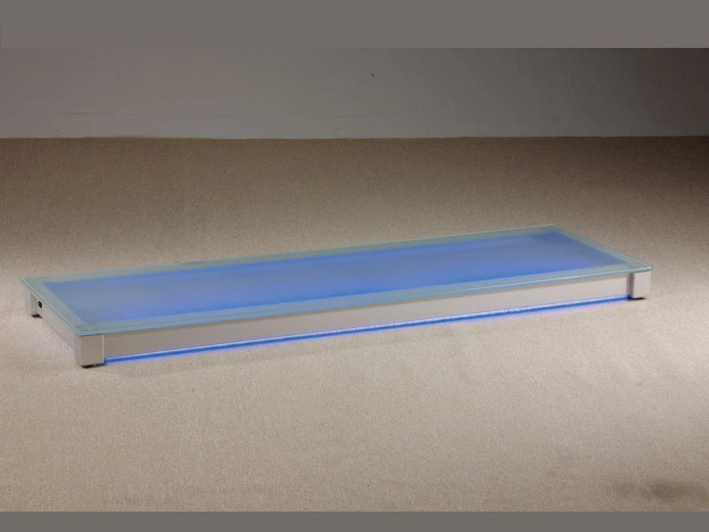 ZhanyiZY-507主機展示藍光電視音響座材質:檯面10mm霧面噴砂強化玻璃,骨架全鋁合金說明:內附T5藍光燈,整組氣質高貴典雅,襯托出府上非凡的氣氛與裝飾備註:鋁合金座高度可依客戶需求更改商品尺