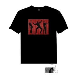 LED男裝短袖聲控發光T恤 紅色激情3人跳舞T恤